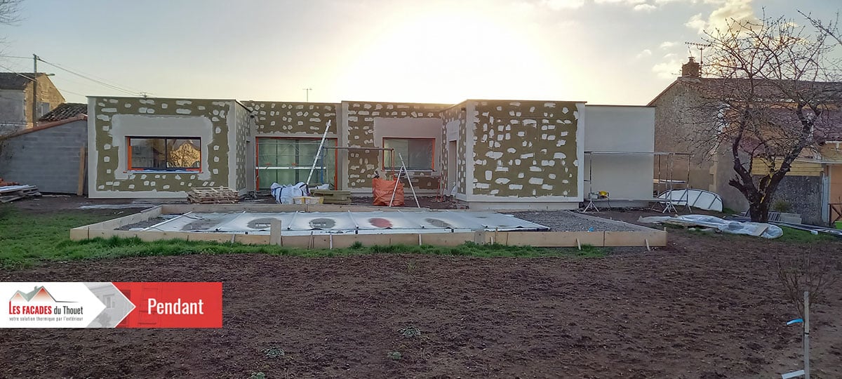 À Fontenay le Comte, dans le département de la Vendée, les futurs habitants de cette maison en construction souhaitaient faire isoler les murs par l’extérieur.